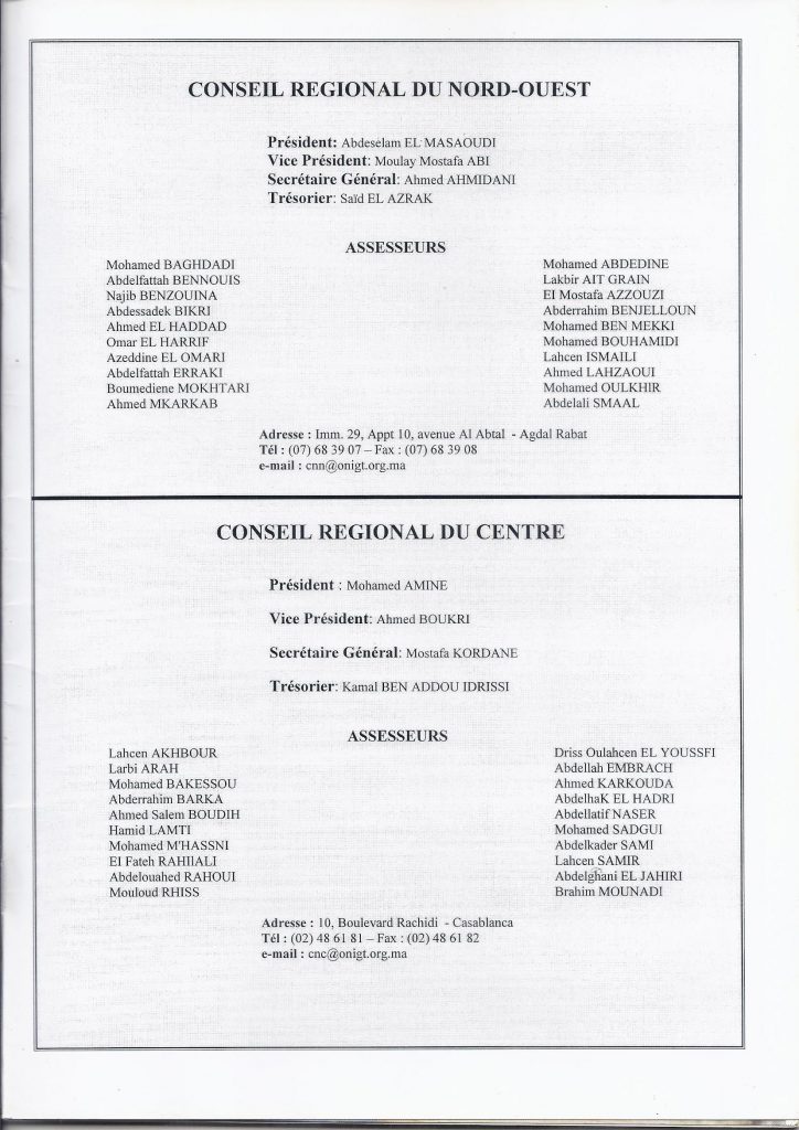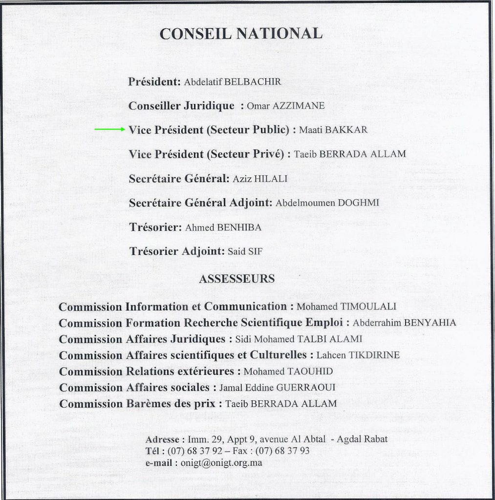 (M.Maati Bakkar à la réunion inter-Conseils de l’ONIGT à Casablanca lors du premier mandat, Première ligne en haut, quatrième à partir de la gauche)